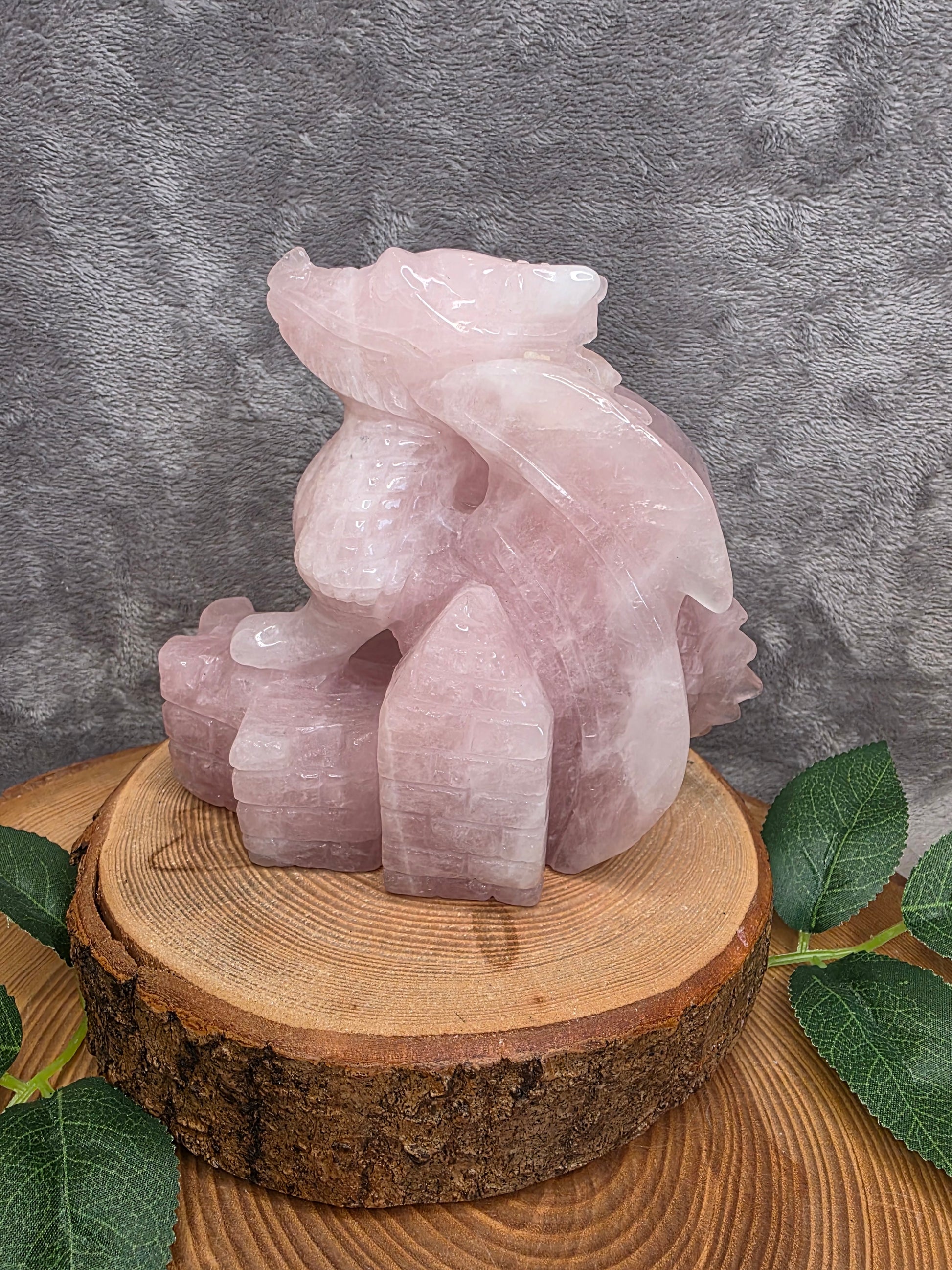 Rosenquarz Drache handgefertigt (R169)