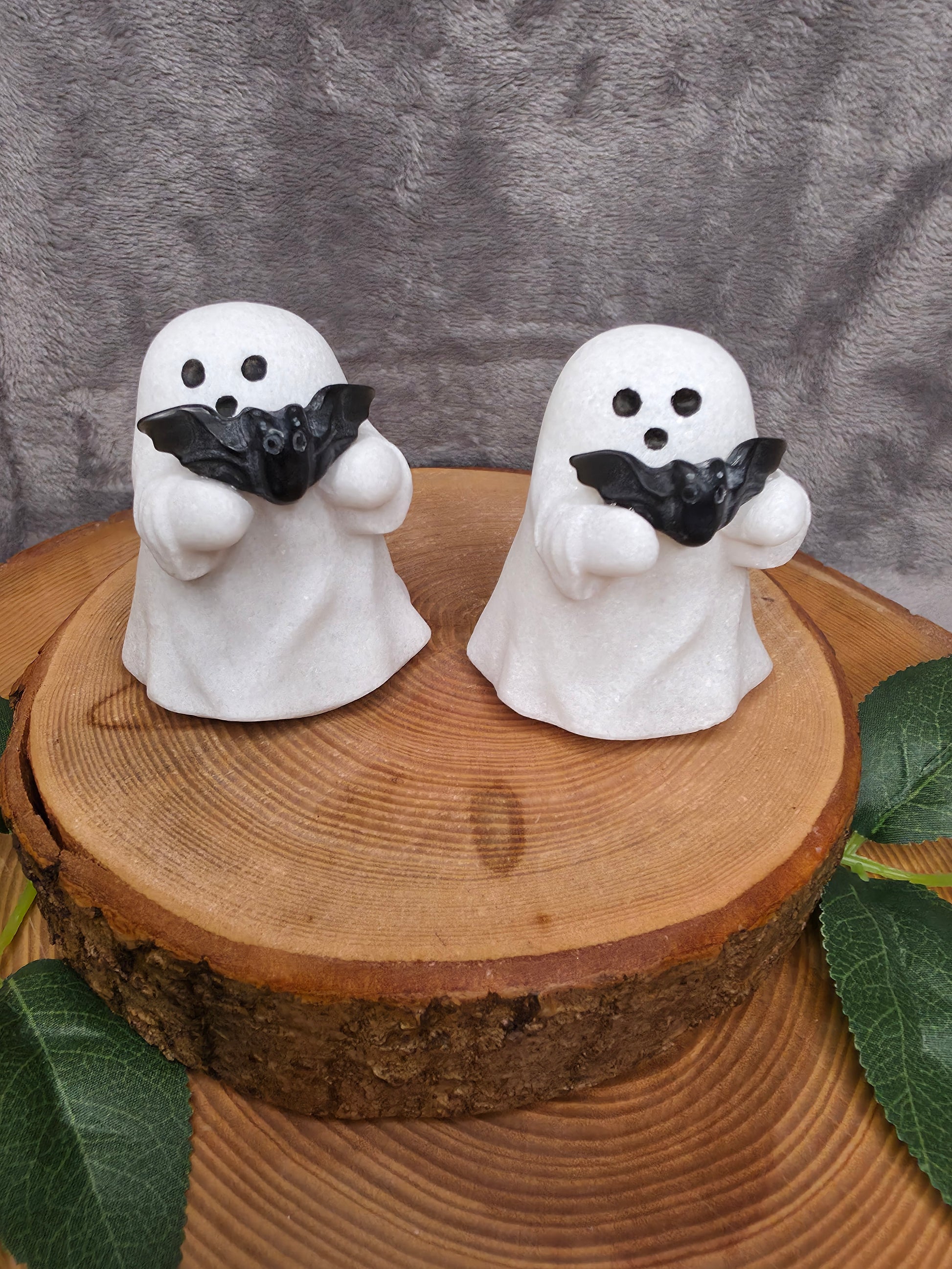 Weißer Jade Geist mit Obsidian Fledermaus